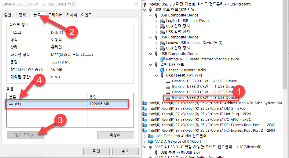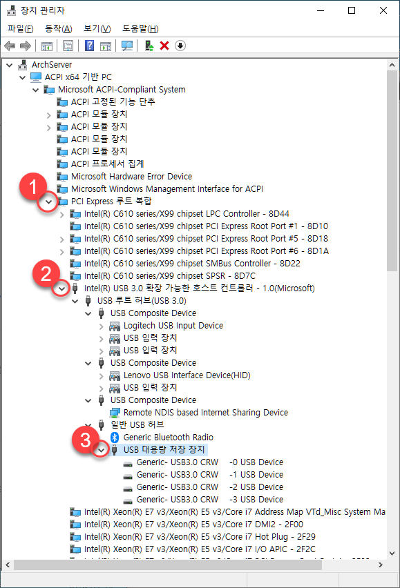 윈도우 10: USB 외장 드라이브가 USB 3.0, 3.1로 동작하고 있는지 확인하기