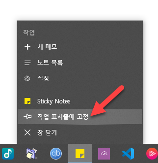 ▲스티커 메모를 자주 사용하신다면 작업 표시줄에 고정해보세요.