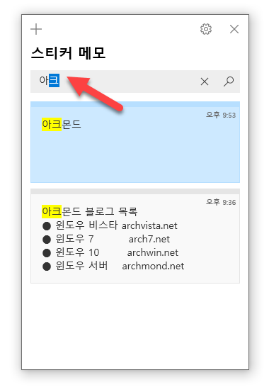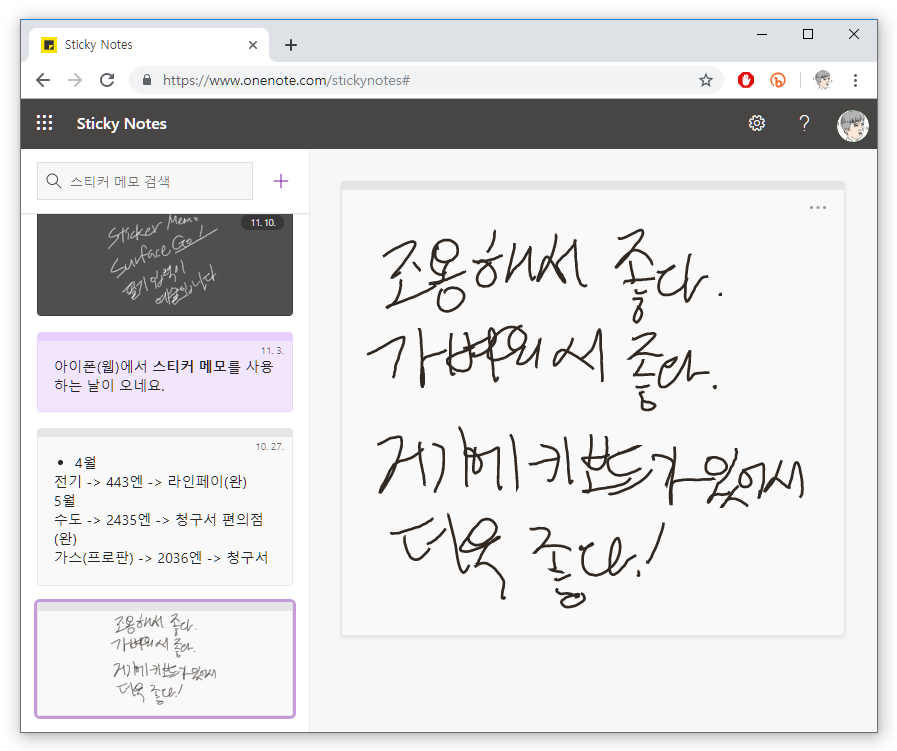 ▲마치 윈도우 10에서 사용하는 것처럼 스티커 노트를 활용할 수 있습니다.