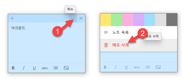 ▲메모를 삭제하려면 …(메뉴)를 눌러 [🗑메모 삭제]를 클릭합니다.