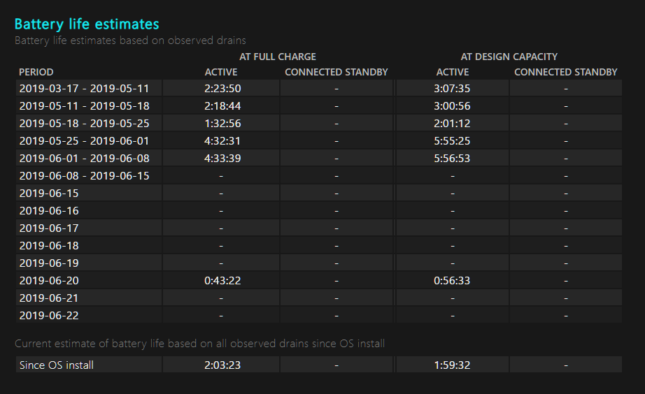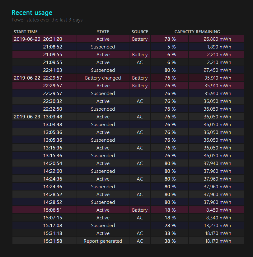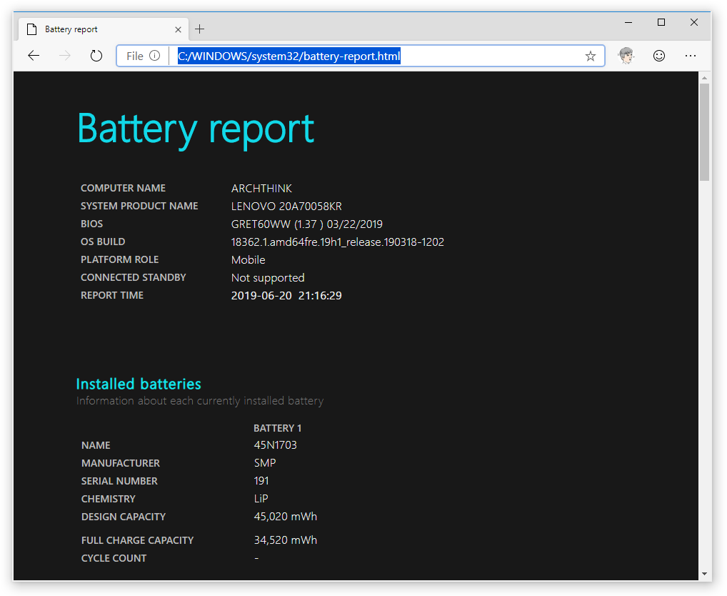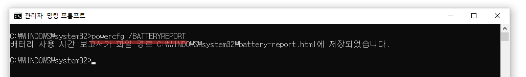완료되면 웹 브라우저에서 C:\Windows\System32\battery-report.html를 열어보세요.