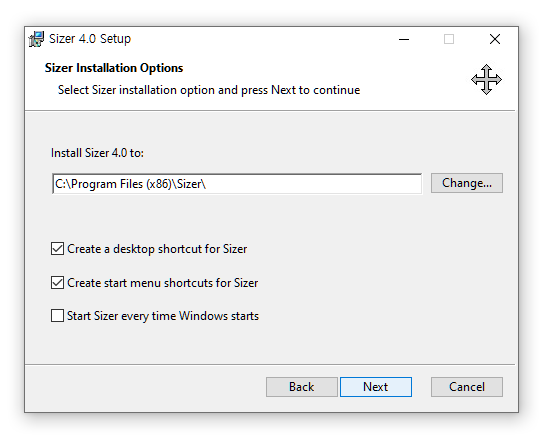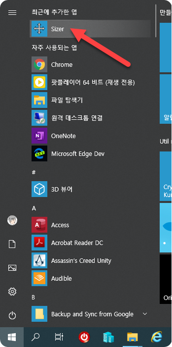 시작 메뉴에 Sizer가 추가됩니다.