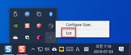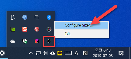 작업 표시줄 우측에 있는 Sizer 아이콘을 마우스 오른쪽 단추로 클릭해 "Configure Sizer…"를 누르세요.
