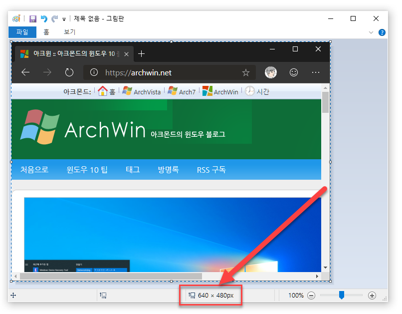 그림판에 붙여넣어봤는데… 정확히 640 x 480 px 크기네요!