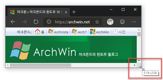팁. 창의 크기를 조절하고 있을 때 우측 하단에 가로/세로 크기가 실시간으로 표시됩니다! 편리하네요.