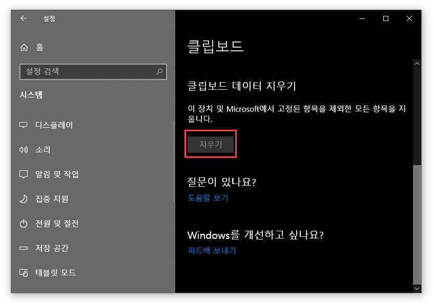 좀 더 깔끔하게, 아래쪽에 있는 '클립보드 데이터 지우기'의 [지우기] 단추를 클릭해주면 더 좋겠죠?