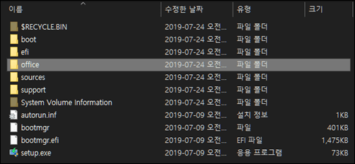 USB에 윈도우 10 이미지를 구워 설치 디스크를 제작. 오피스 2019는 office라는 폴더를 만들어 넣었다. 참고로 일본어 윈도우 설치할때 맨 처음 스피커 볼륨을 줄이는(혹은 음소거) 것을 잊지 마시라. 한국엔 없지만 일본엔 코타나(Cortana)가 있다는 것… 100%볼륨으로 지정되어 있으므로 깜짝!!놀랄 수 있다.(아… 이거 수정 안되나...휴,,,)