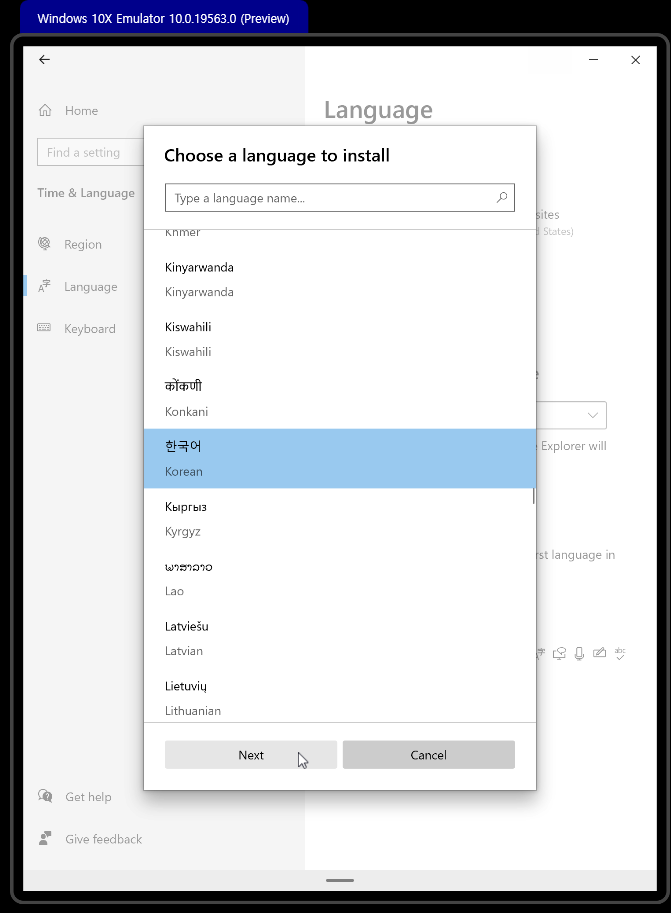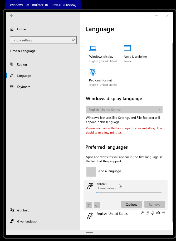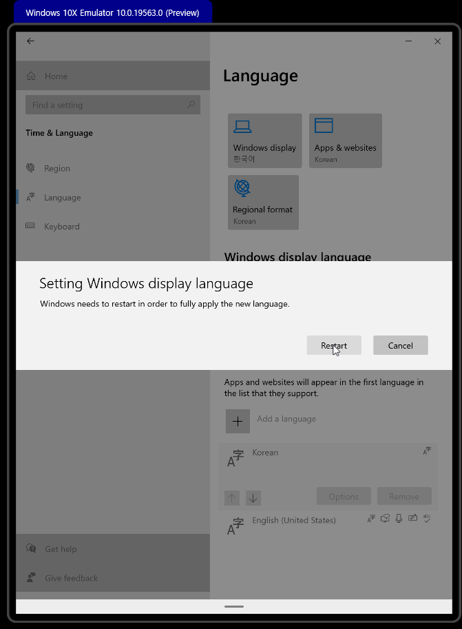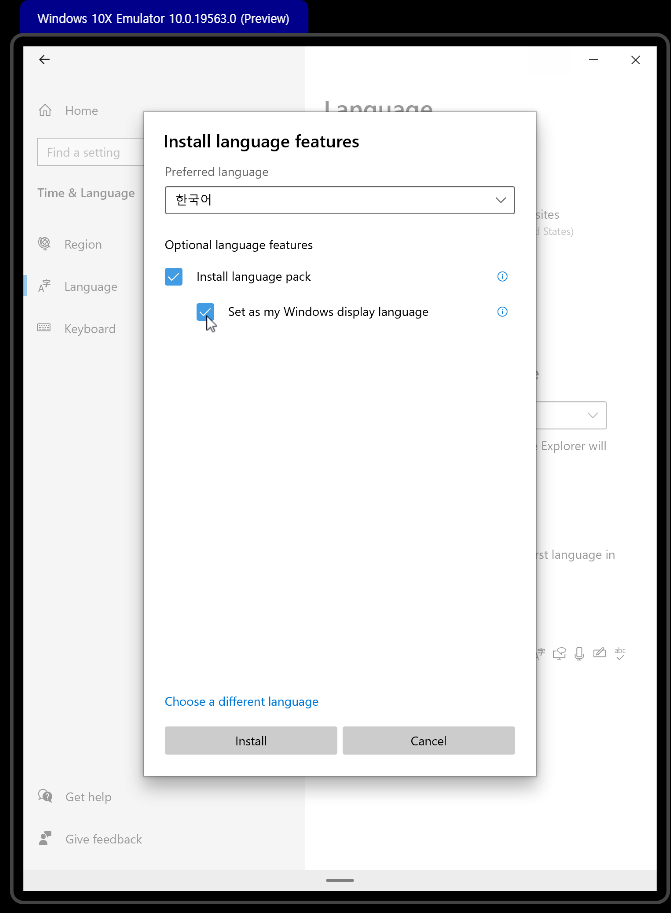 윈도우 10X 한국어 언어 팩(Language pack) 설정하기