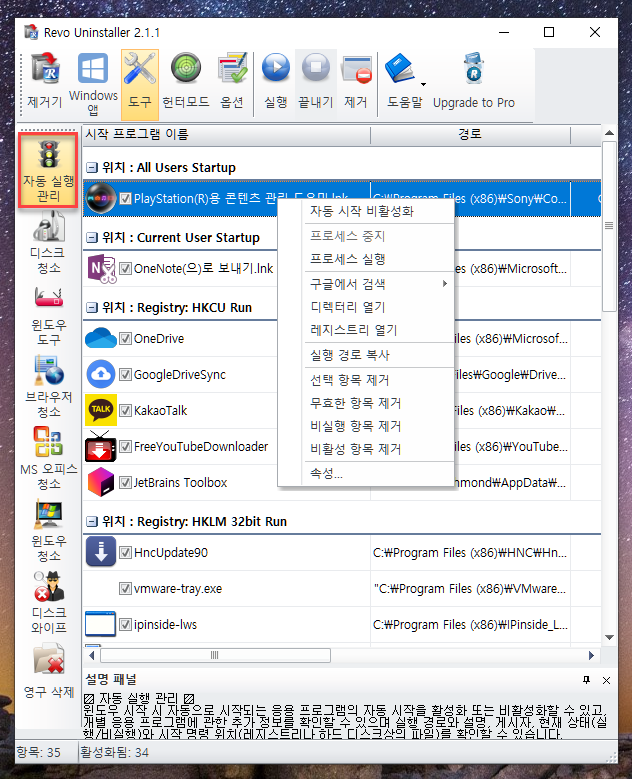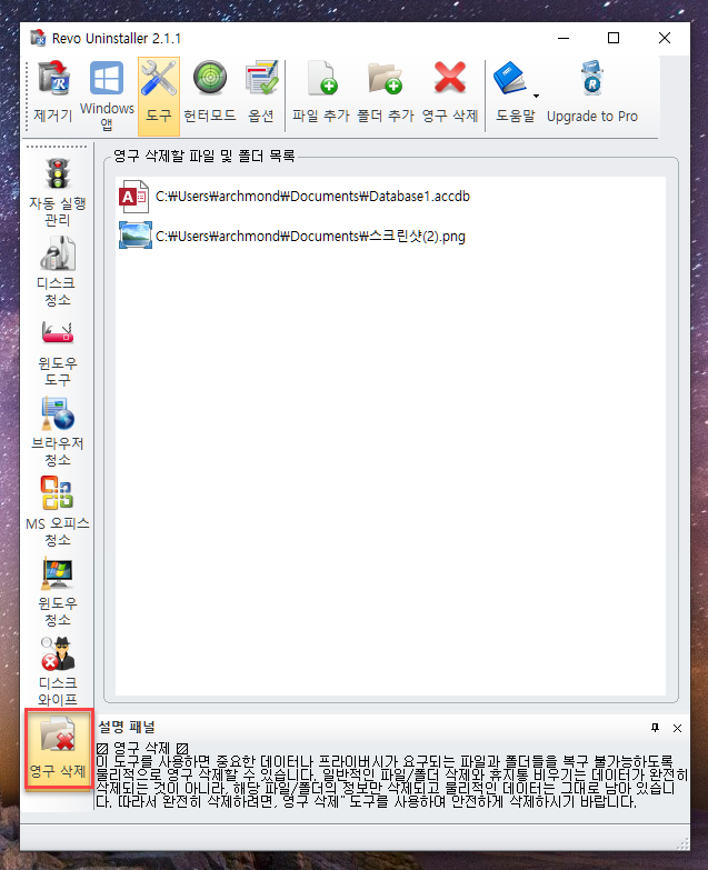 프로그램 다운로드: https://www.revouninstaller.com/products/revo-uninstaller-free/
