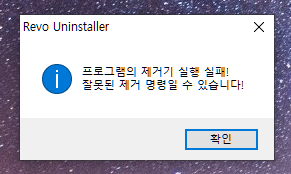 이런… 제거기 명령 실패가 뜨네요. 일단 확인.