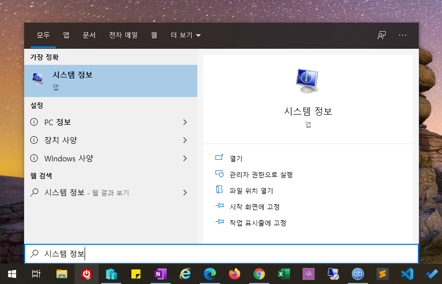 시작 단추를 눌러 '시스템 정보'를 입력해 실행합니다.