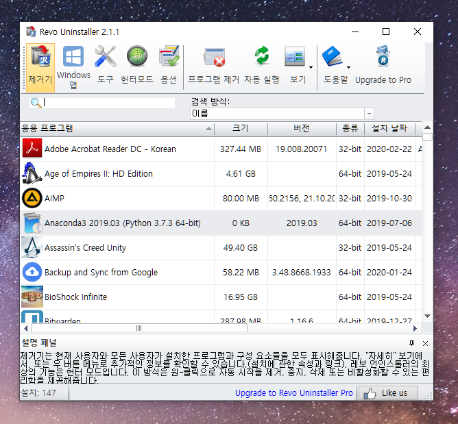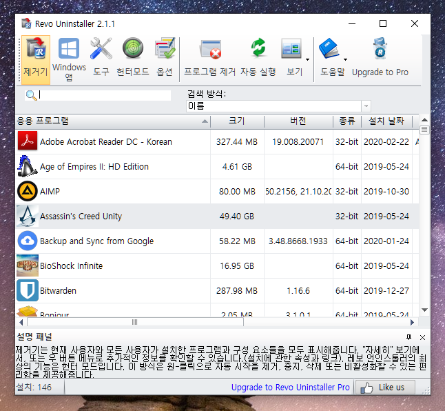 프로그램 다운로드: https://www.revouninstaller.com/products/revo-uninstaller-free/
