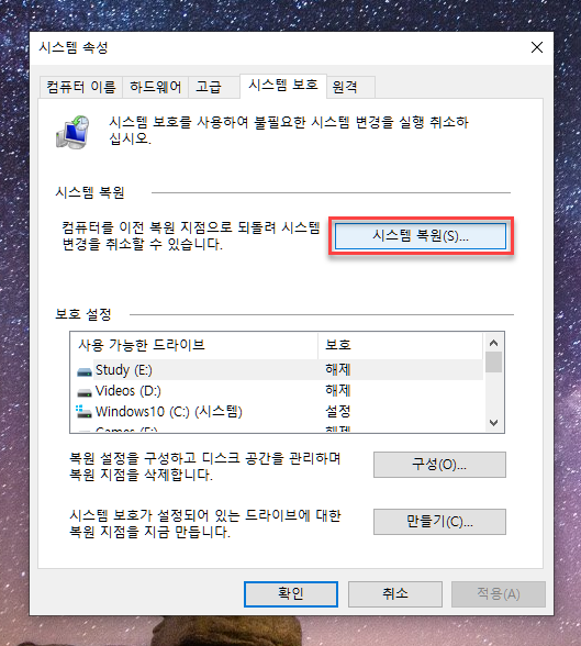 작업 전에 시스템 복원 지점을 만들어주니 일말의 복원 가능성은 있지만, 그래도 신중히 선택합니다.