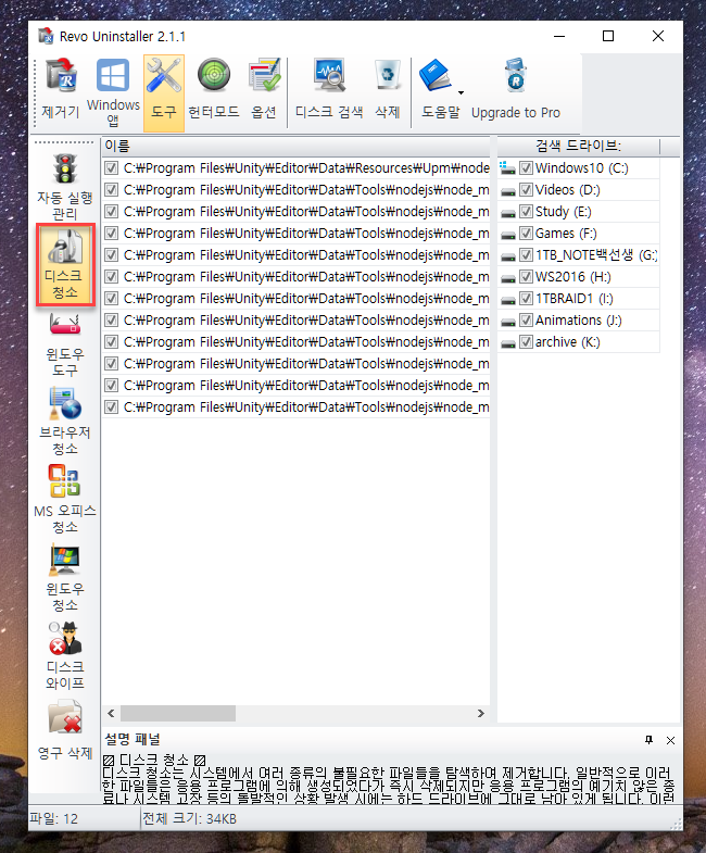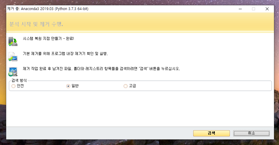 그래도 시스템 복원 지점을 만들고, 제거 작업 이후 남겨진 파일 검색까지 뜹니다. 검색해보죠.