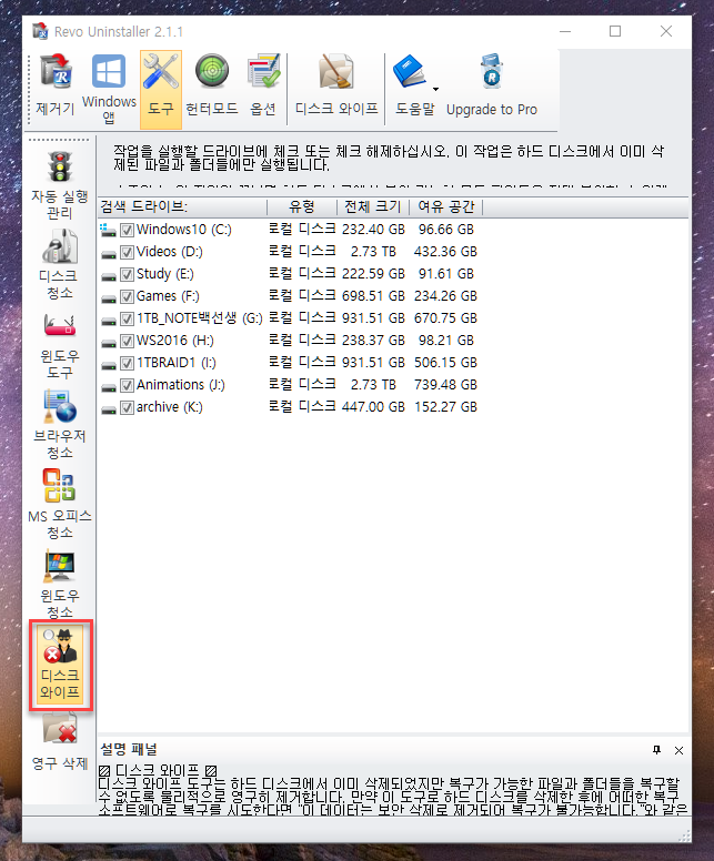 [디스크 와이프]내 하드 디스크를 정말 깨끗한 상태로 만들어 중고로 판매하거나, PC를 선물할 때는 디스크 와이프 기능이 꼭 필요하죠!
