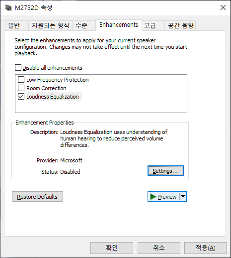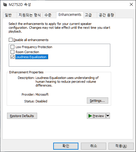 윈도우 10에서 라우드니스 이퀄라이제이션(Loudness Equalization) 활성화: FPS 게임에서 필수옵션?