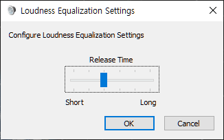 ▼라우드니스 이퀄라이제이션 설정(Loudness Equalization Settings) 대화 상자에서 릴리즈 시간(Release Time)을 알맞게 조절해보세요. 설정했다면 [OK]를 누릅니다.