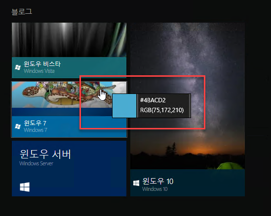 [윈도우 키] + [Shift] + [C] 키를 눌러 화면의 색상을 추출할 수 있습니다.