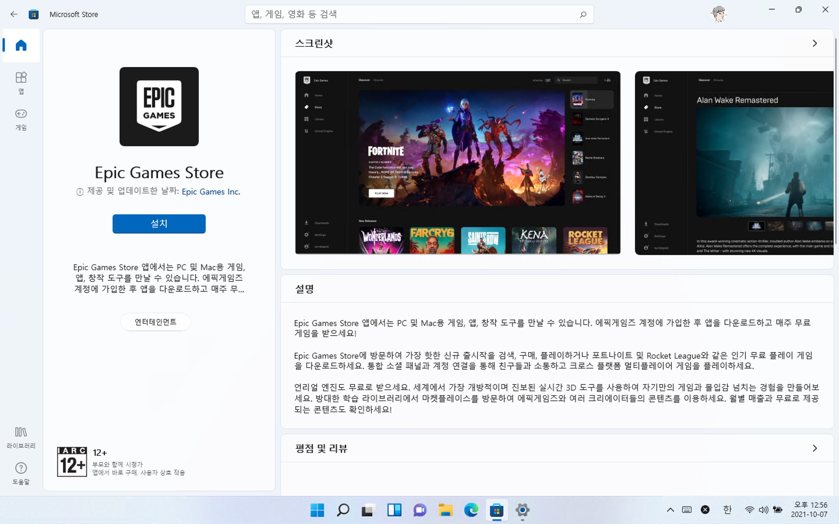 윈도우 11 스토어: 에픽 게임 스토어 앱 추가