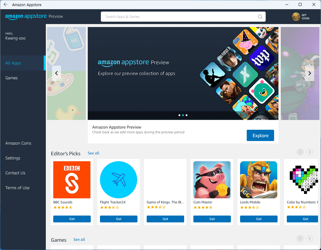 - You will also need to have a U.S.-based Amazon account to use the Amazon Appstore.