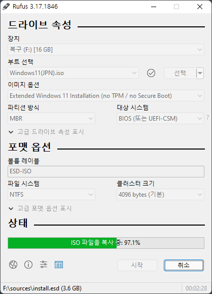 Rufus를 이용해 지원되지 않는 PC용 윈도우 11 설치 USB 만드는 방법.