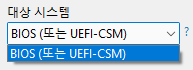 대상 시스템은 선택한 파티션 방식에 따라 자동으로 선택됩니다(구형 컴퓨터라면 BIOS입니다).
