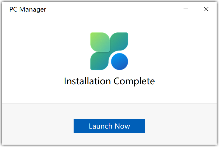 약 30초 정도 뒤 설치가 완료되었습니다. Launch Now를 누르면 실행됩니다(PC Manager는 시스템 상주형 프로그램으로, 알림 영역에 아이콘이 나타납니다).