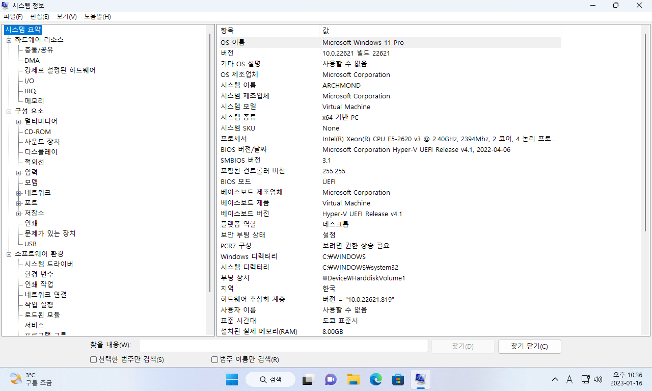 시스템 정보(msinfo32)를 통해 좀 더 자세한 정보를 확인할 수 있습니다.