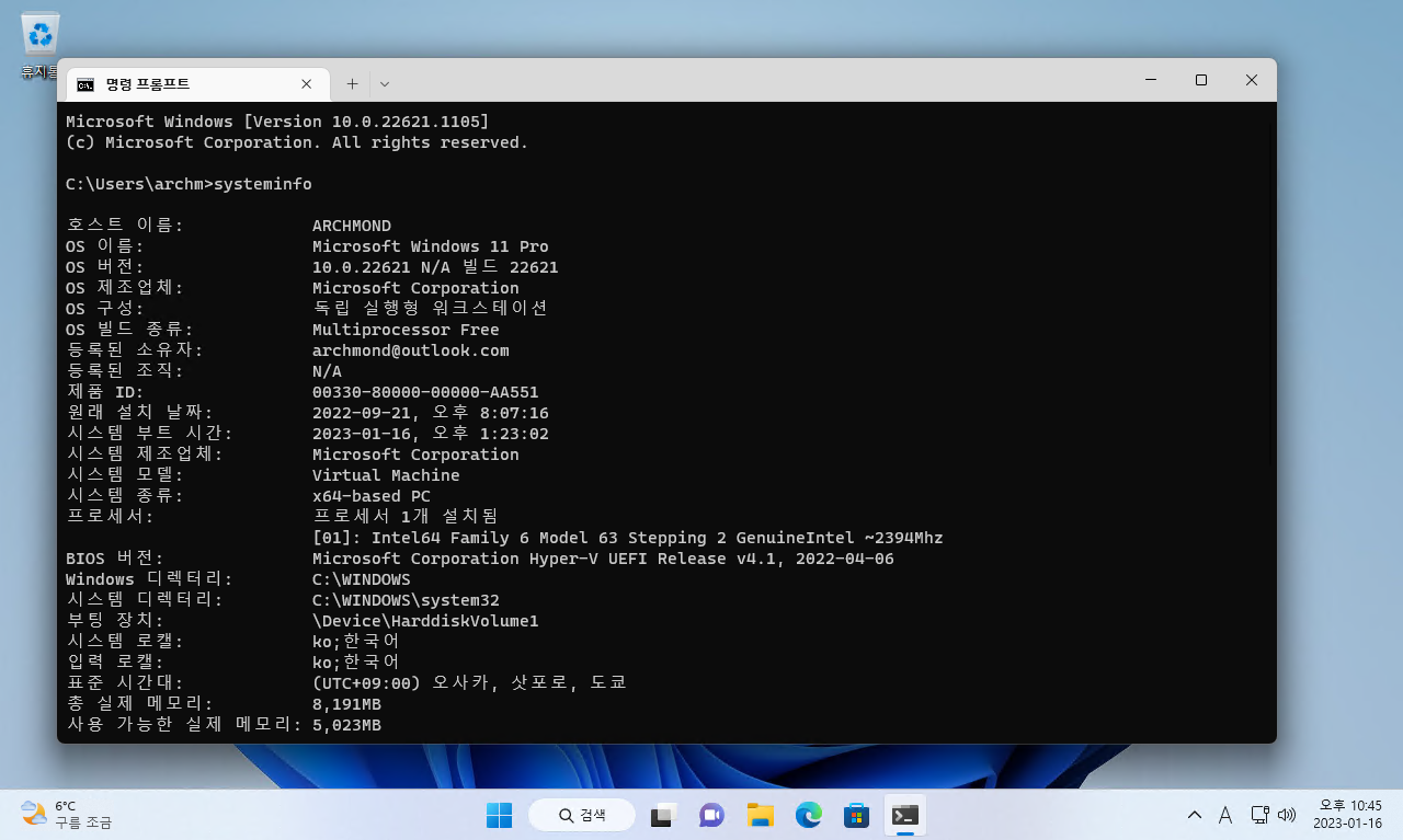 5. 명령 프롬프트에서 확인하기: systeminfo