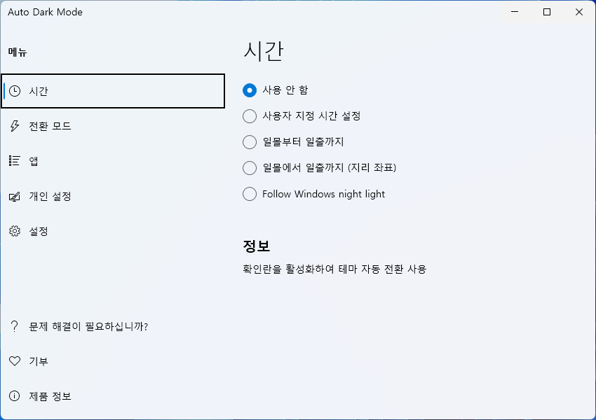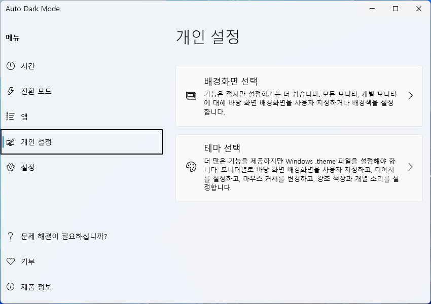 윈도우 11 오토 다크 모드: 일몰🌇과 일출🌅에 맞추어 테마를 변경해주는 편리 도구