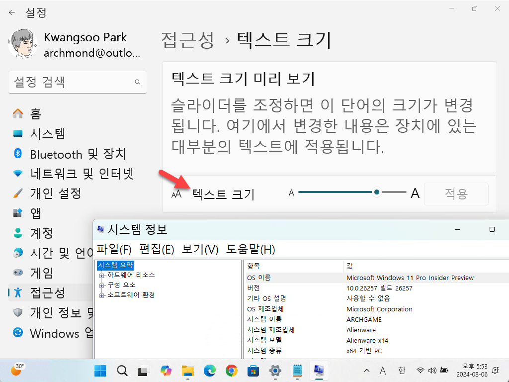 [기타] 설정 > 접근성 > 텍스트 크기에서 시스템 정보(msinfo32)가 이제 사용자의 텍스트 크기 기본 설정을 따르도록 업데이트했습니다.