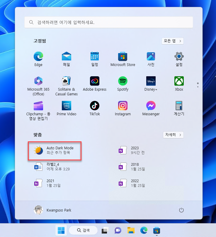 ▼설치하면 시작 메뉴에 Auto Dark Mode가 나타납니다.
