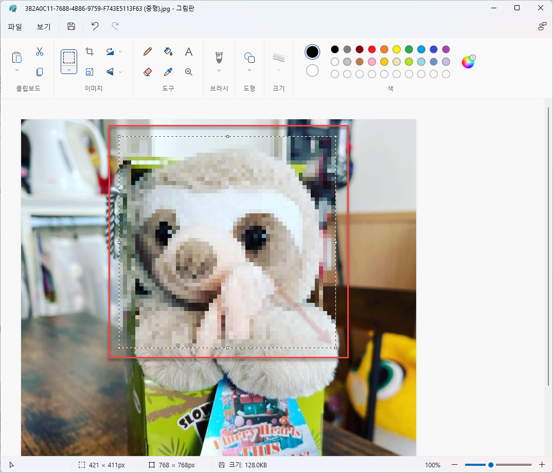 ▲원래 크기대로 늘려주면 OK! 모자이크 처리되었습니다.