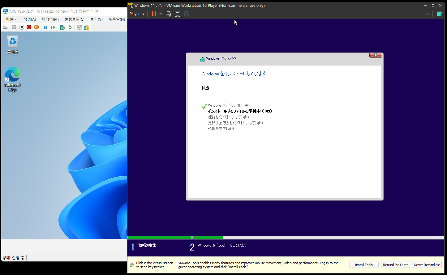 ▼Hyper-V와 VMWare Workstation Player가 동시에 실행됨을 확인.