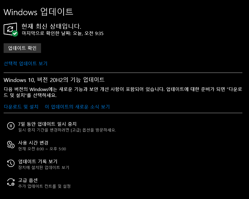 Windows 10, 버전 20H2의 기능 업데이트가 올라왔다. 정식 버전명은 Microsoft Windows 버전 20H2(빌드 19042.572)이다.