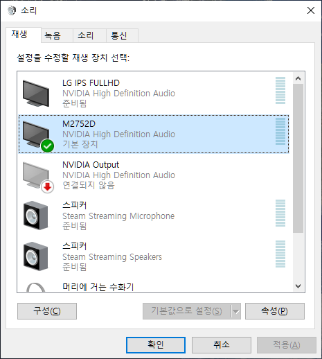 ※2 사용하는 사운드 카드에 따라 이 옵션이 나타날 수도, 나타나지 않을 수도 있습니다. 가능하면 최신 드라이버로 업데이트하는 것이 좋습니다.
