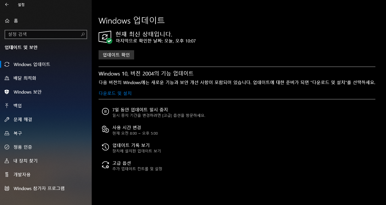 Windows 10, 버전 2004의 기능 업데이트