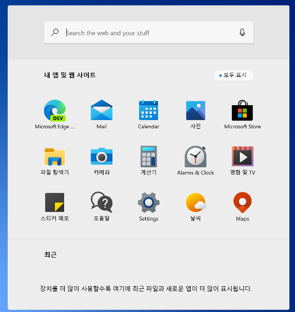 기본적으로 윈도우 10X(Windows 10X)를 시작하면 영문으로 표시됩니다. 인터넷이 연결된 환경이라면 언제든지 자신에게 익숙한 언어로 변경해 사용할 수 있습니다. 마치 윈도우 10처럼요.