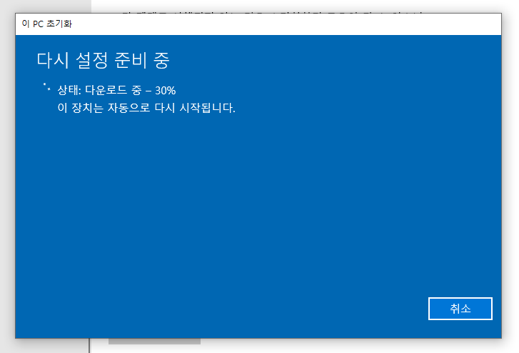 내려 받기가 끝나면 재설치 준비를 하여 재부팅됩니다.