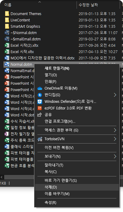 워드(Word) 2019(365): Normal.dotm 파일이 이상할 때