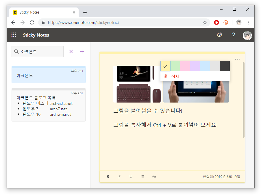 2. 웹에서 스티커 메모를 확인해 보세요.