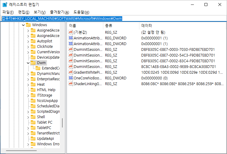 컴퓨터\HKEY_LOCAL_MACHINE\SOFTWARE\Microsoft\Windows\Dwm
